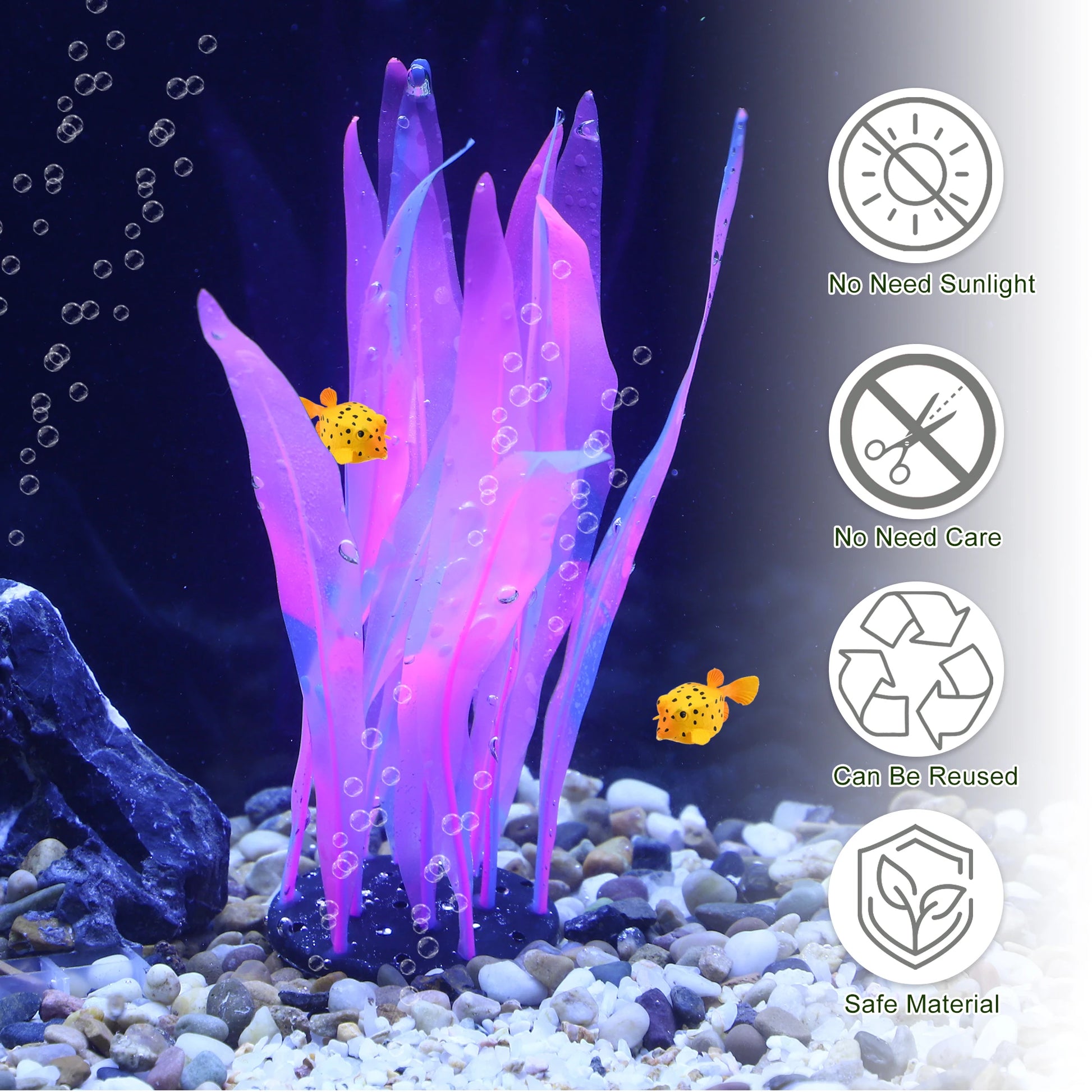 Silicone glow fish tank decor plants are made of soft silicone material, which is harmlessly to fish, does not fade, does not rust, does not pollute water, is washable can be used repeatedly