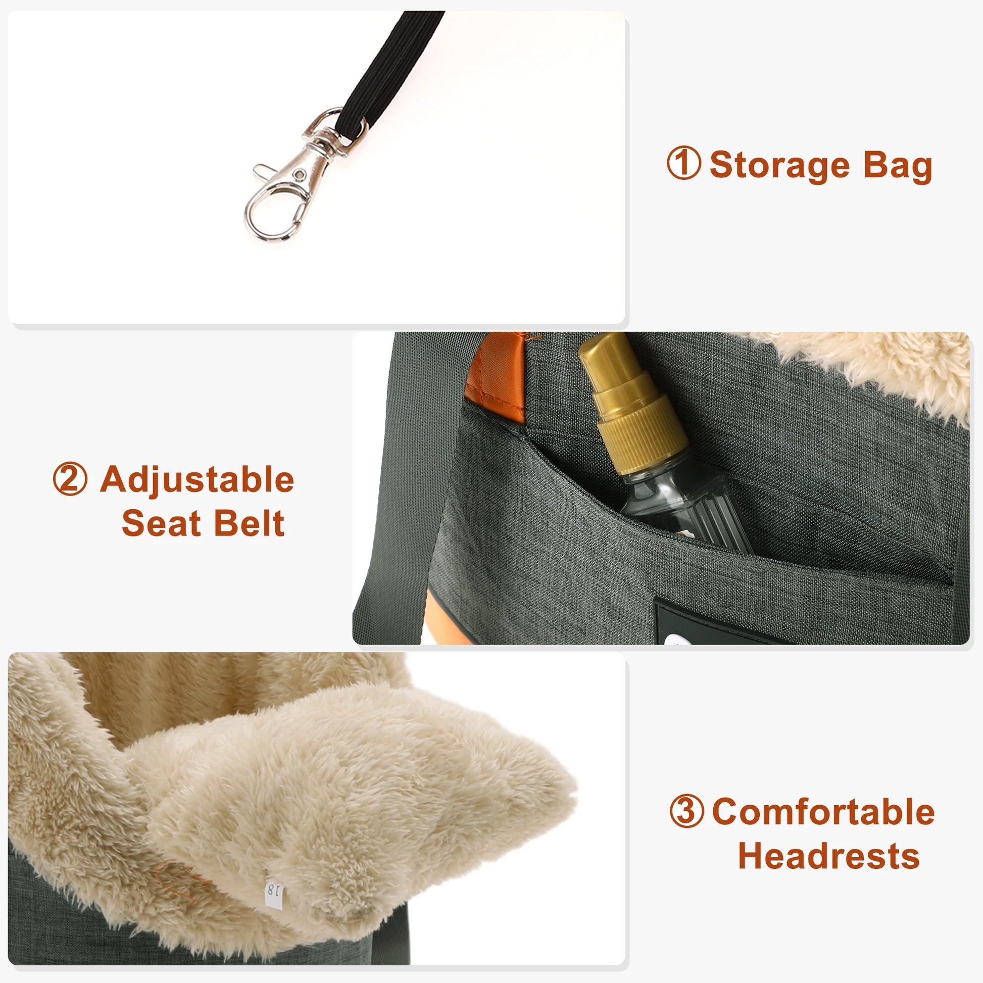 UXCELL Console Dog Car Seat Dog Beds Dog Mats Portable Booster Washable Front Seats for Small Pets Warm Sofa for Dogs Cats