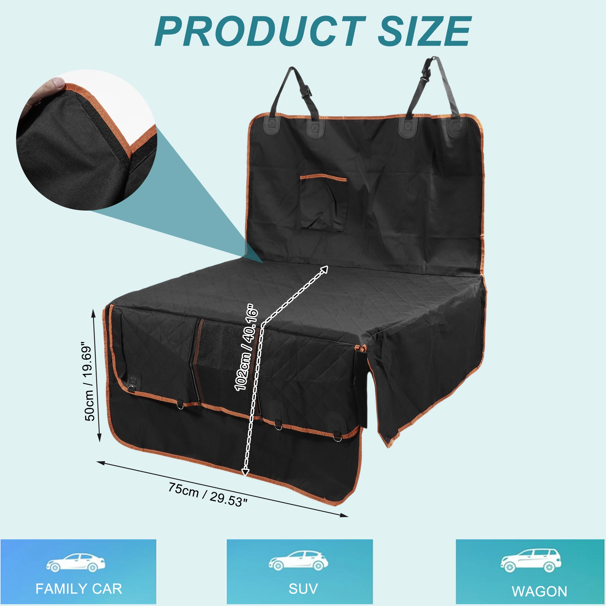 • This dog car seat cover is crafted with a multi-layered design including a waterproof coating, a non-slip bottom, and PP cotton filling for optimal comfort and protection during travel.