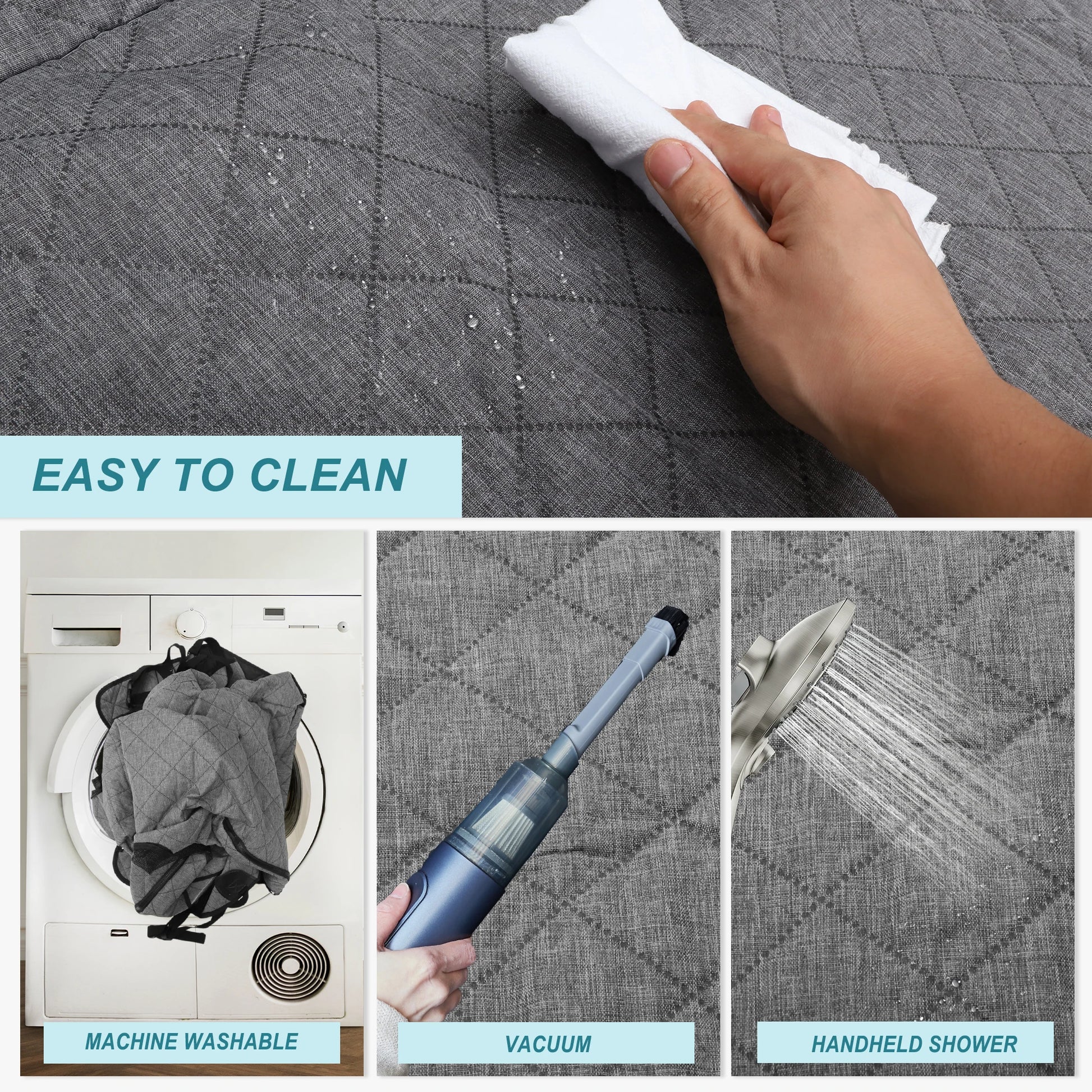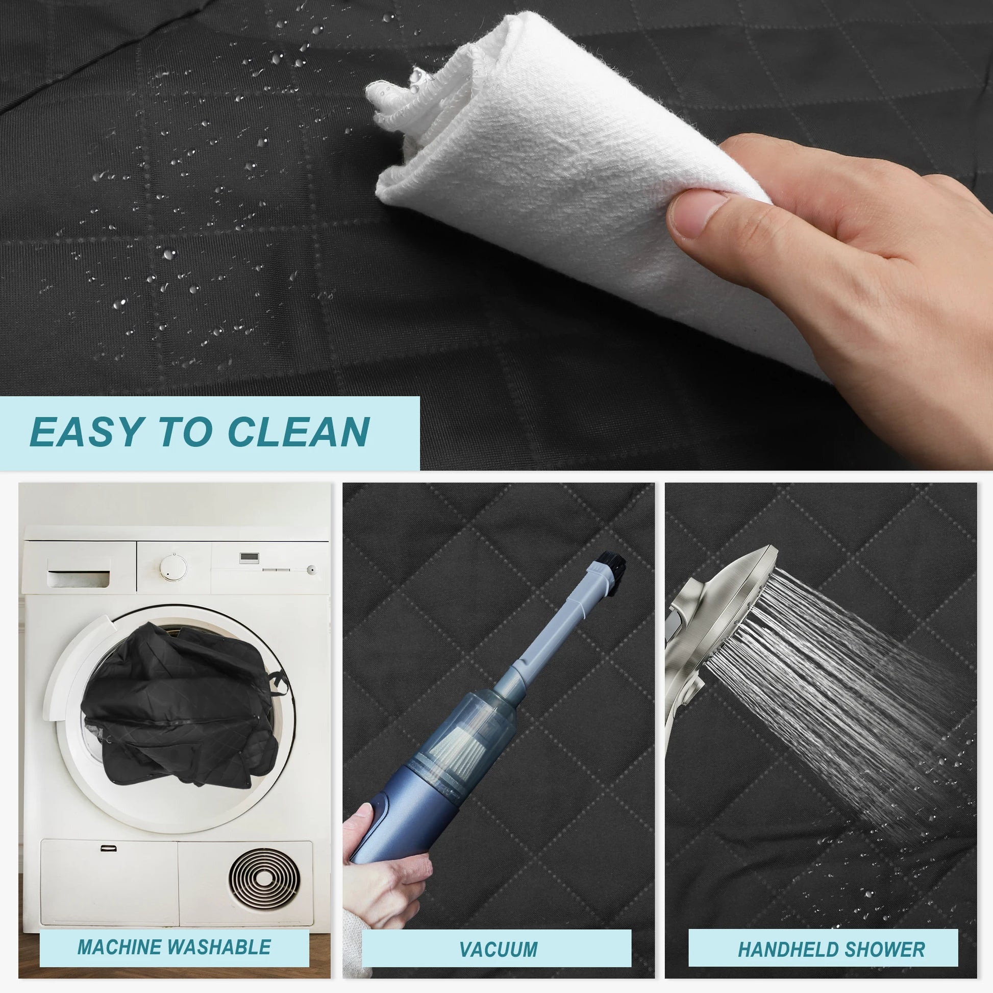 The dog seat cover for the back seat is Enhanced with a raised design on all sides to protect pets and seats.