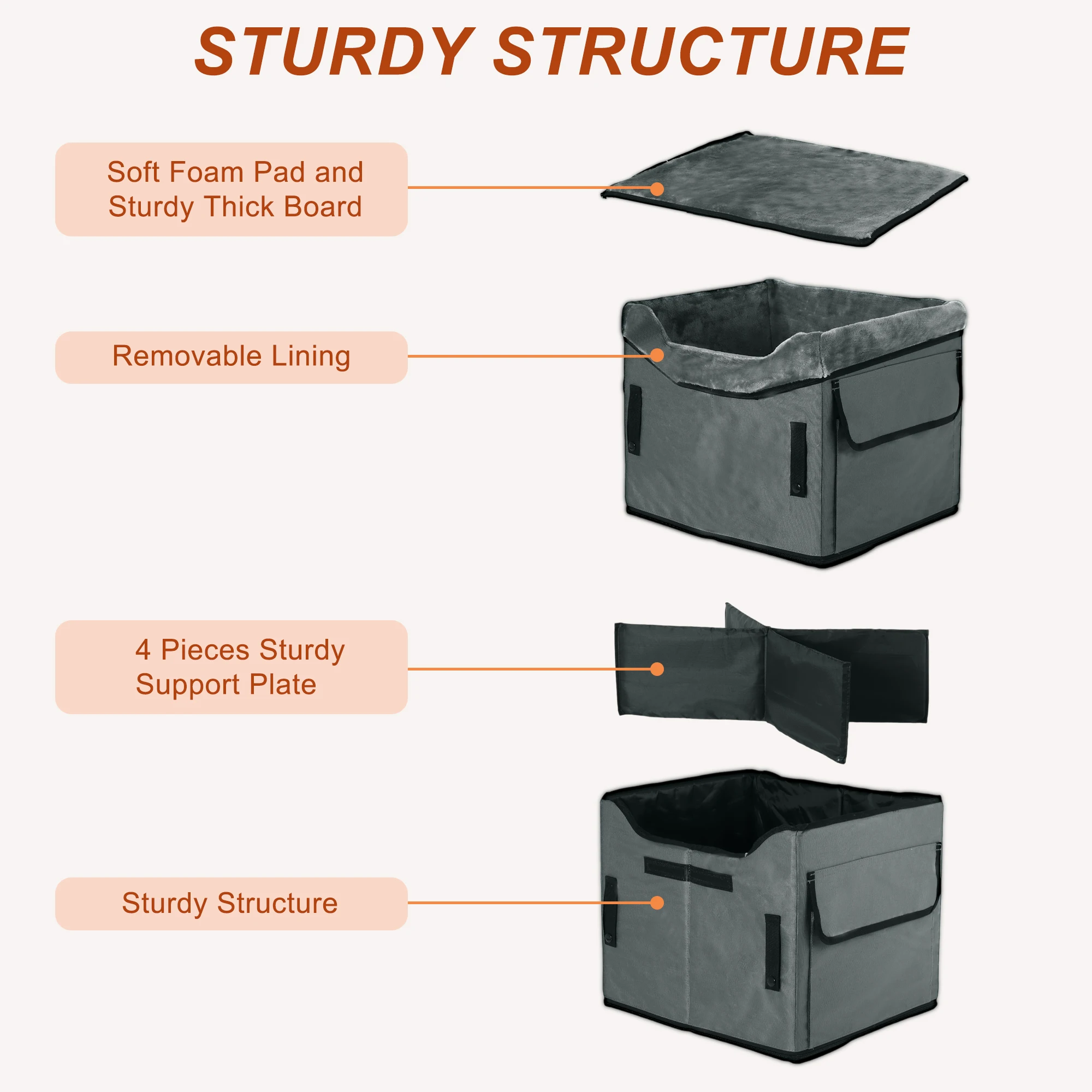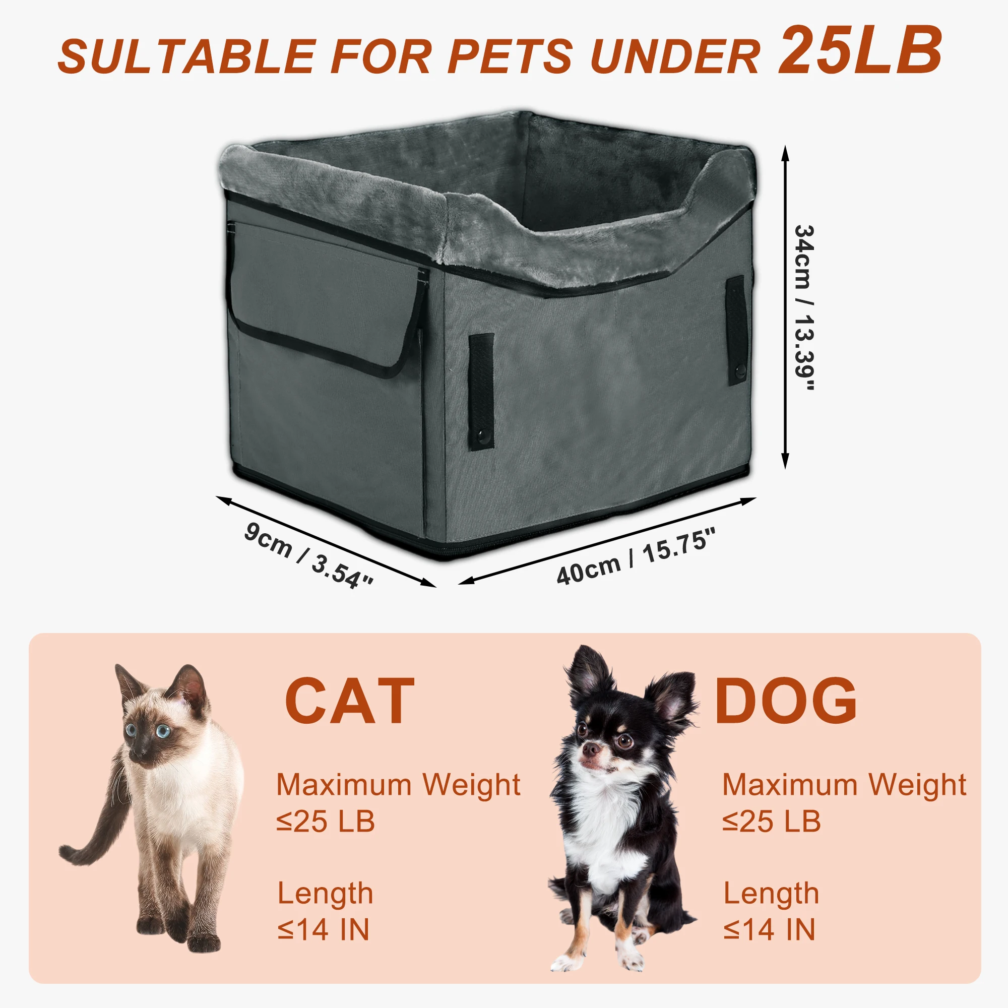 Cat car seat This portable seat is easy to install and secure with fixing straps, and it includes a pet safety belt to prevent jumping out