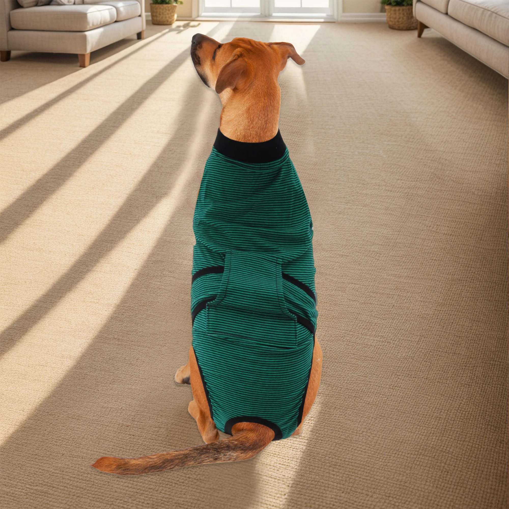 The pet recovery suit is expertly designed to provide comfort and support for your pet during recovery. Made with quality cotton materials, it ensures a snug fit without restricting movement.