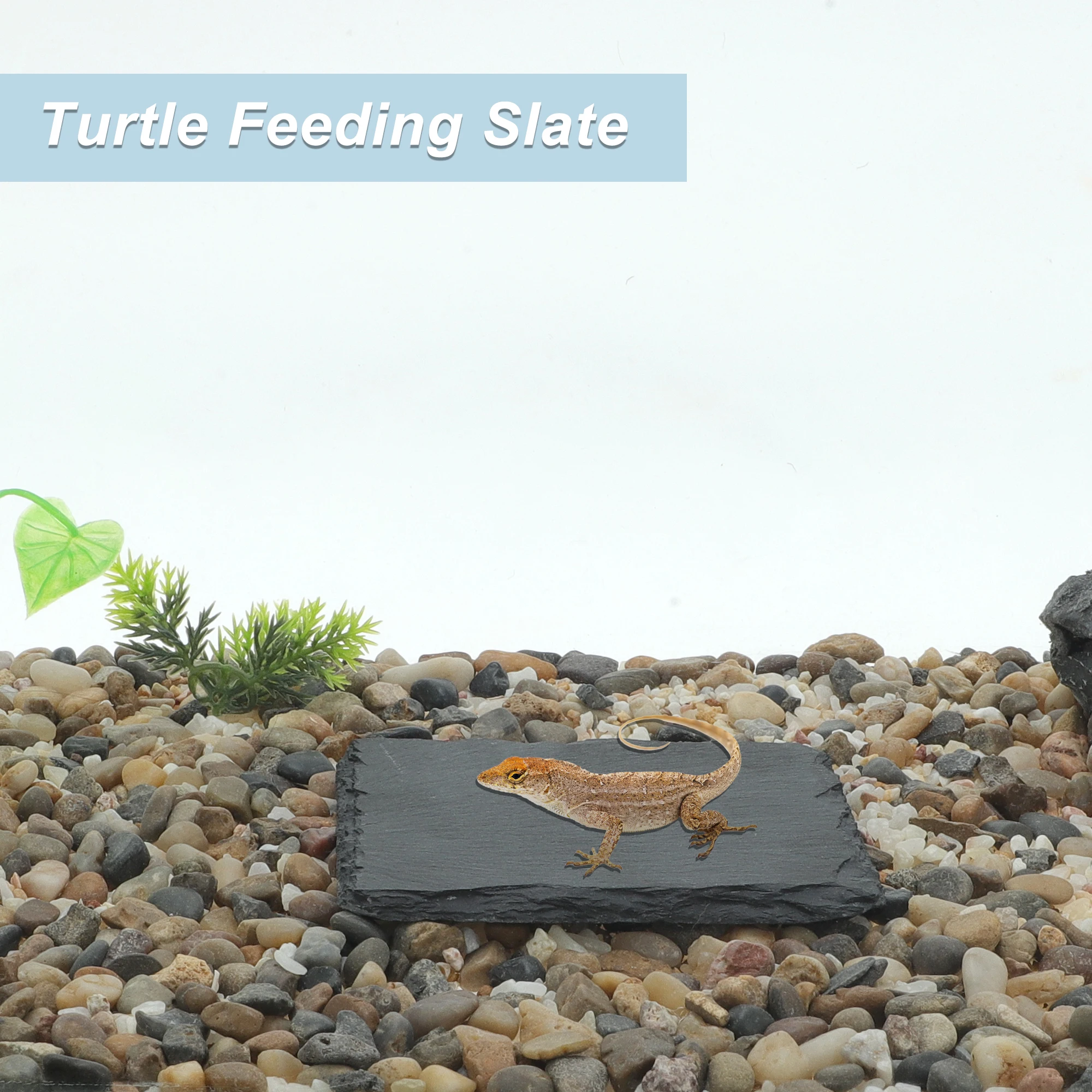 The tortoise habitat slate provides a comfortable spot for reptiles to rest and feed, promoting natural behaviors in their habitat.