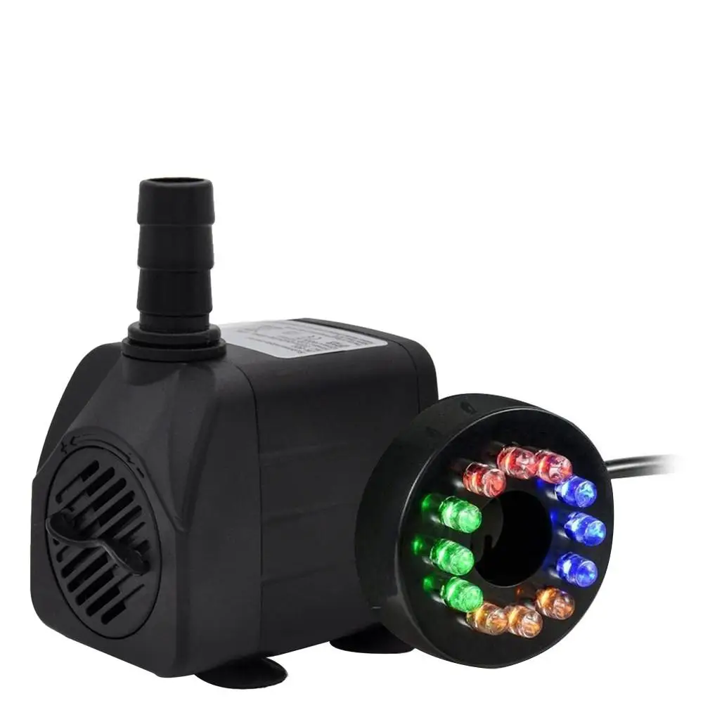 W Ultra Quiet Submersible Water Fountain Filter Fish Pond Aquarium Water Pump Tank Fountain With 12 Lights
