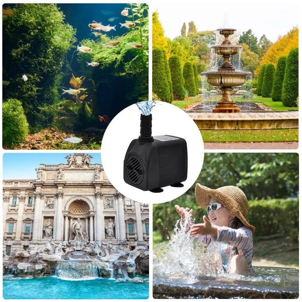 2.Diverse Applications: Submersible Pump can be used for decorating your indoor fountain, swimming pool, pet fountain, garden, pond, aquarium, or hydroponic system.