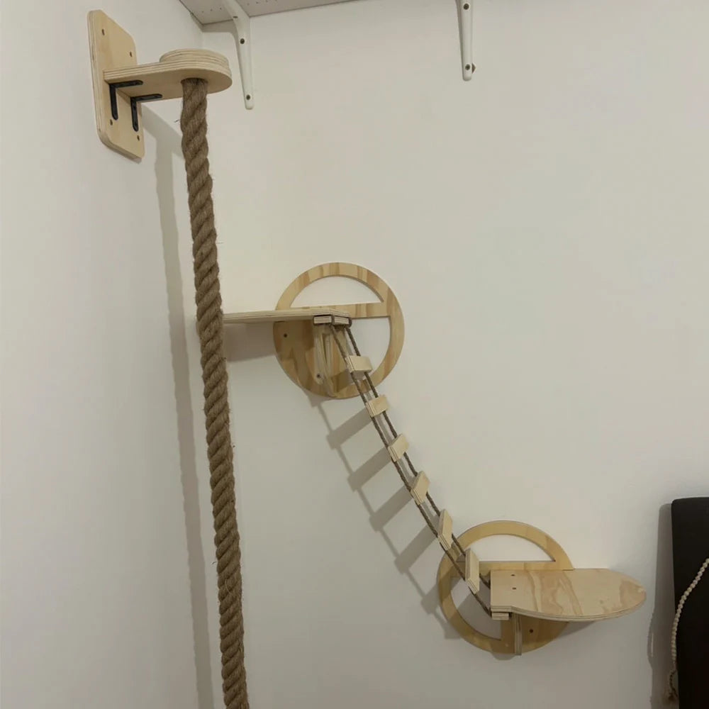 Wall Mounted Cat Climbing Rope & Bridge Wooden Cat Furniture for Cats Exercise & Claw Grinding Indoors Sturdy & Durable Cat Toys