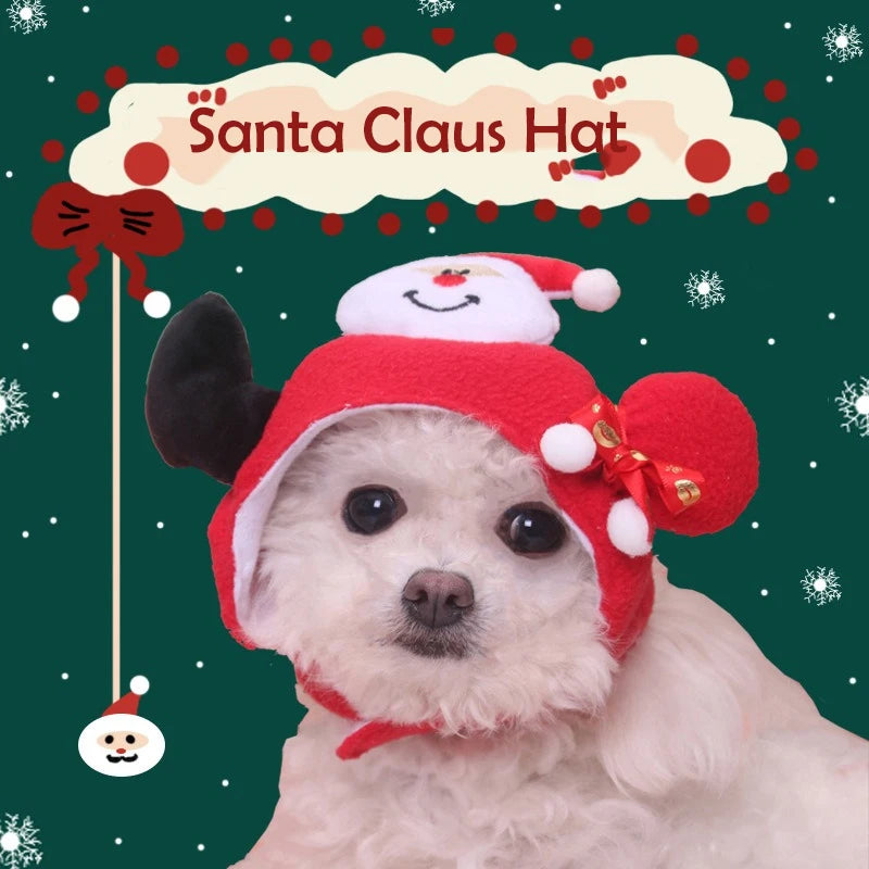 Warm Fleece Cartoon Pet Hat for Cat Christmas Keep Warm York Dog French Bulldog Head Wear Snowman Deer Winter Pet Accessories