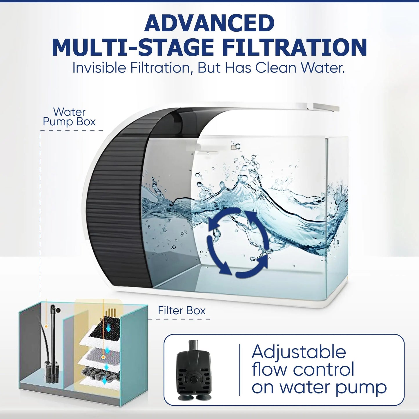 3."Efficient Power Consumption" - Equipped with a 5W water pump, this fish tank operates efficiently, ensuring low noise and energy conservation.