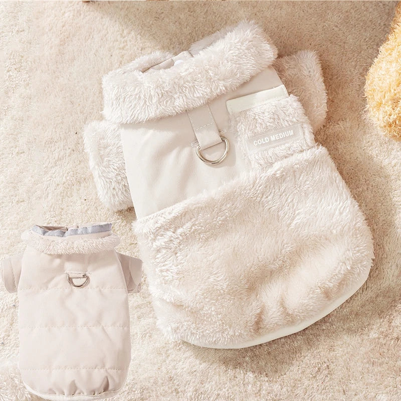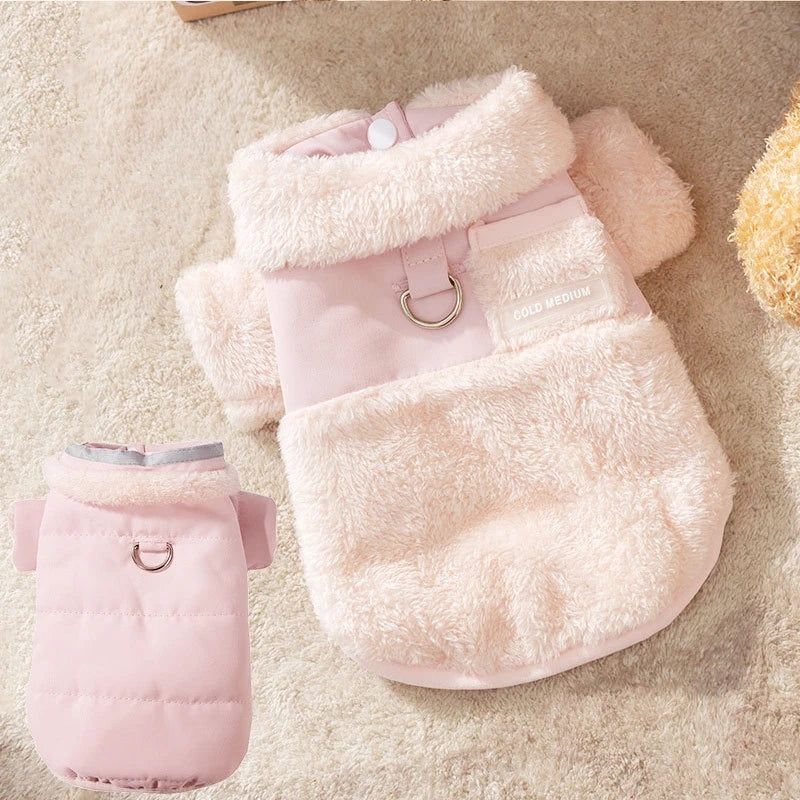 Winter Dog Jacket Fleece Pet Coat Double Sided Wear Dog Warm Clothes Thickened Cat Clothing Chihuahua Bichon Costume with D-Ring
