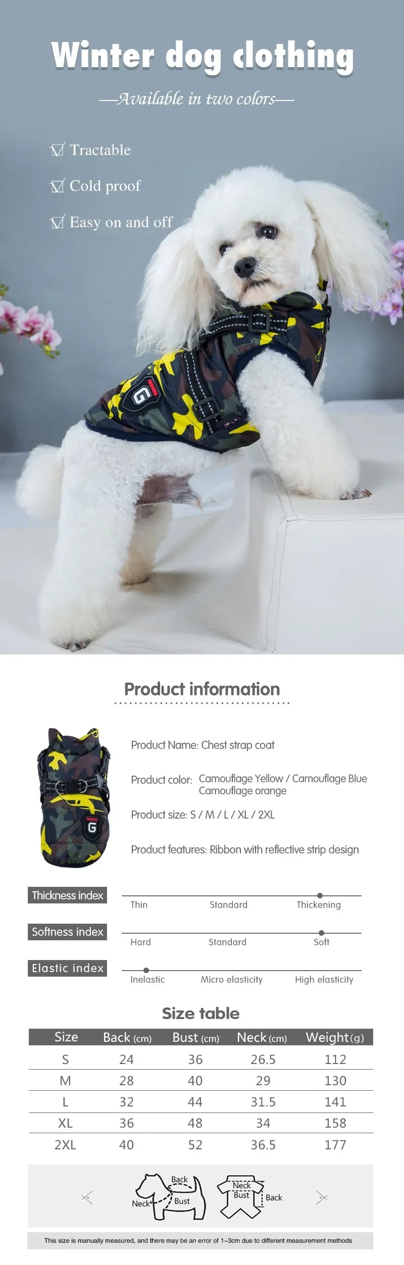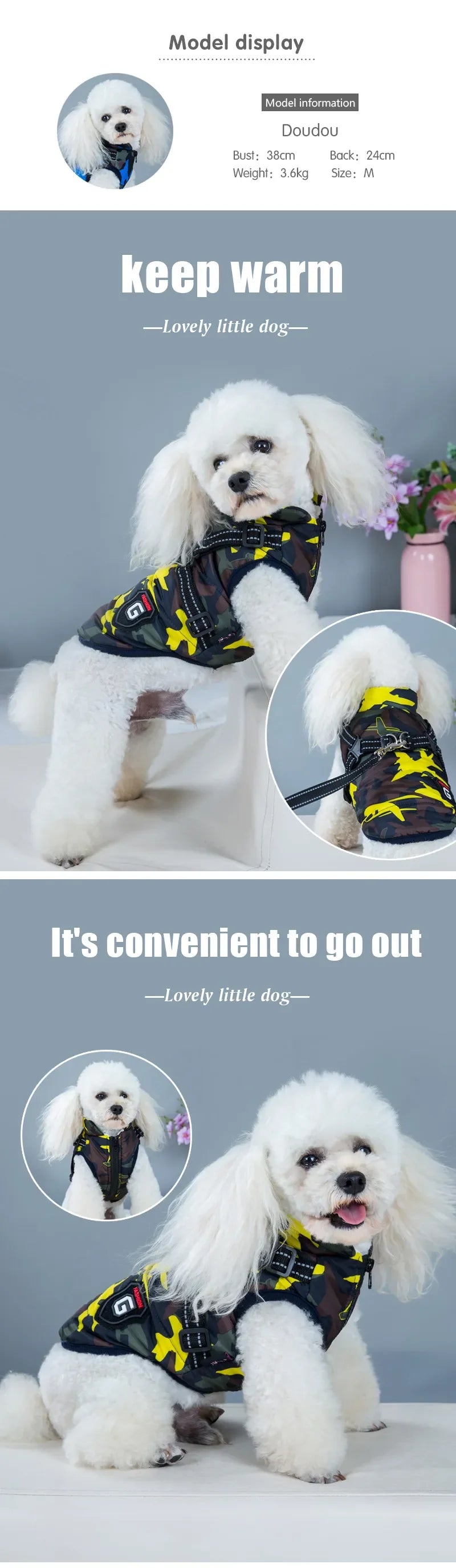 Winter Pet Dog Harness Vest Jacket Clothing Waterproof Coat Dog Clothes For Small Medium Dog Camouflage Windproof Puppy Pug Coat