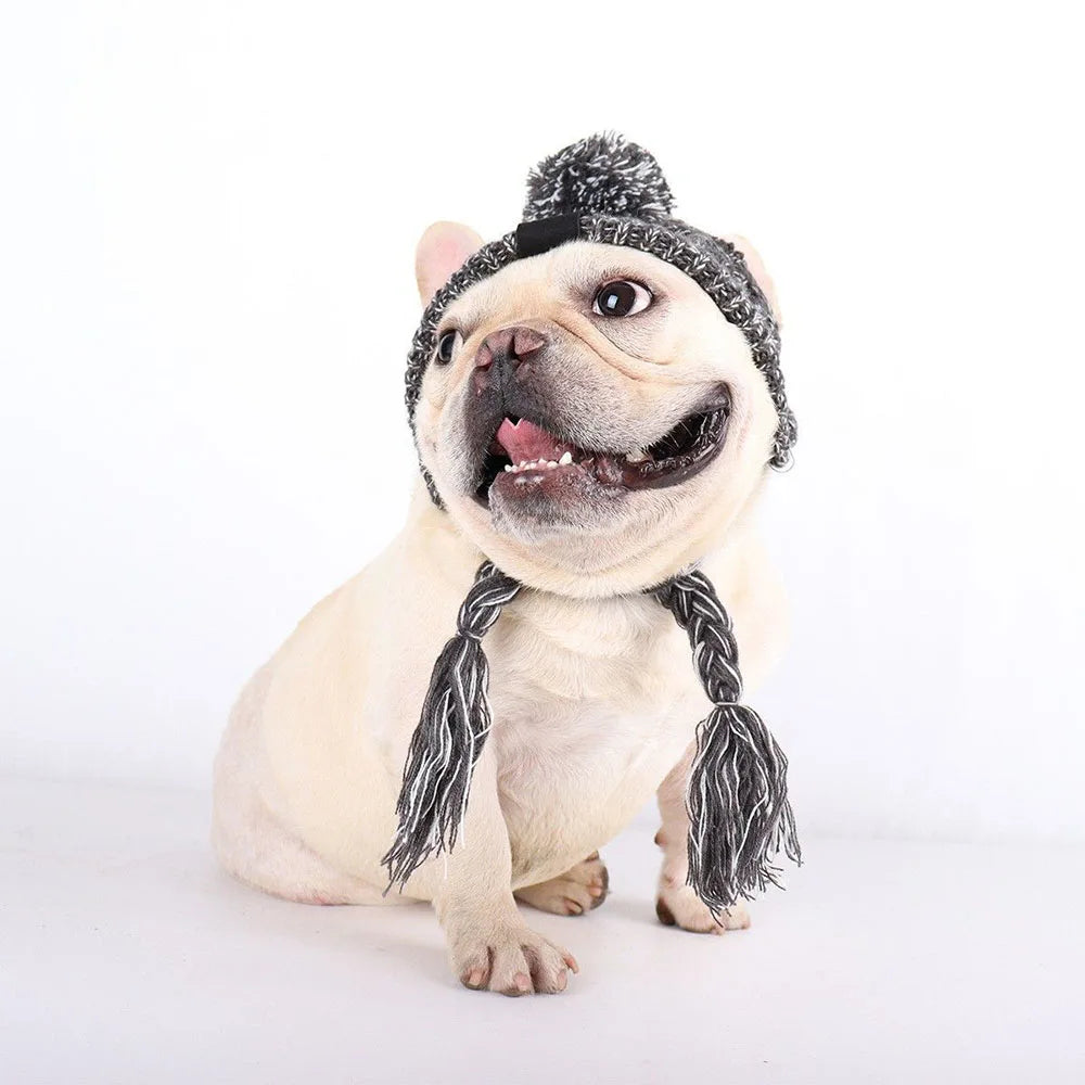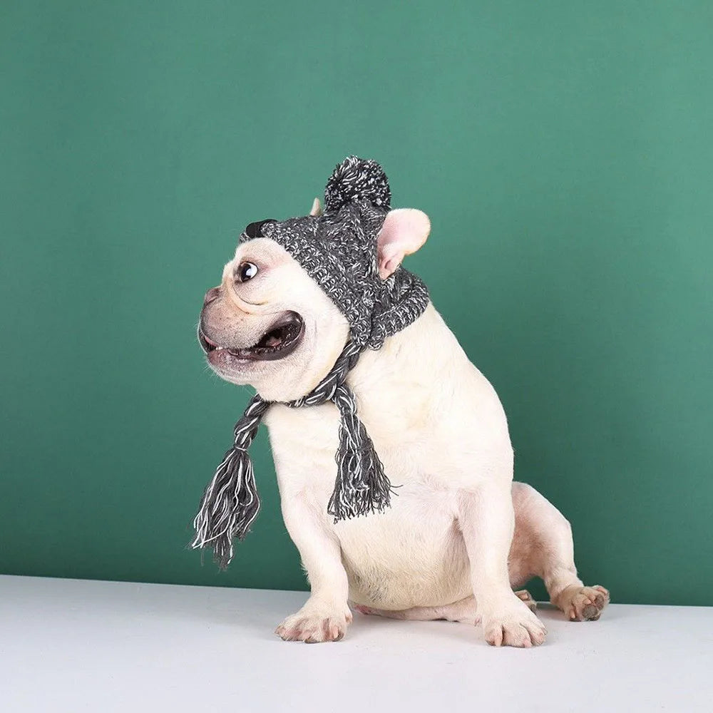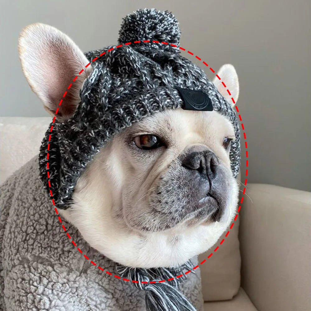 Winter Soft Dog Hat Warm Pet Dog Knitted Hat with Ear Holes Windproof Knitting French Bulldog Hat for Puppy Small Medium Dog Cap