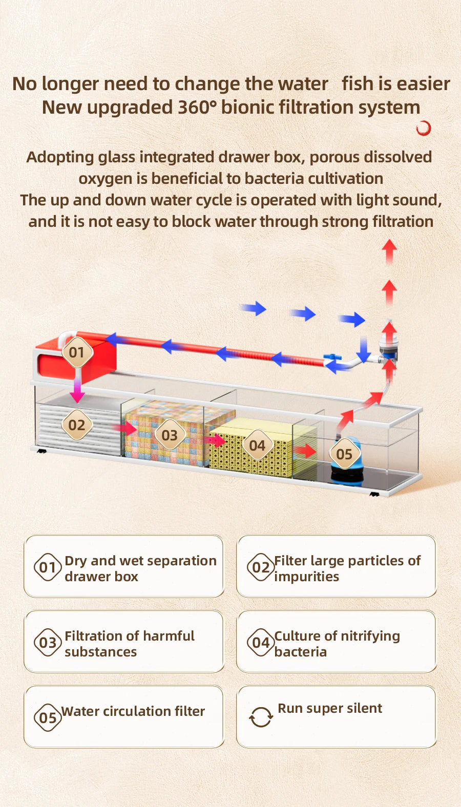 YEE Hot Sale New Chinese Style Multi Color Home Office Middle Large Glass Aquarium Fish Tank
