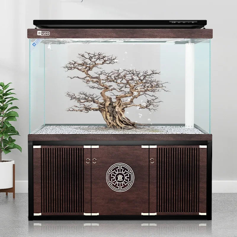 YEE Hot Sale New Chinese Style Multi Color Home Office Middle Large Glass Aquarium Fish Tank